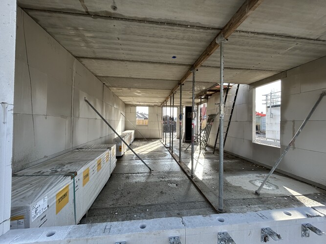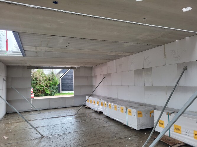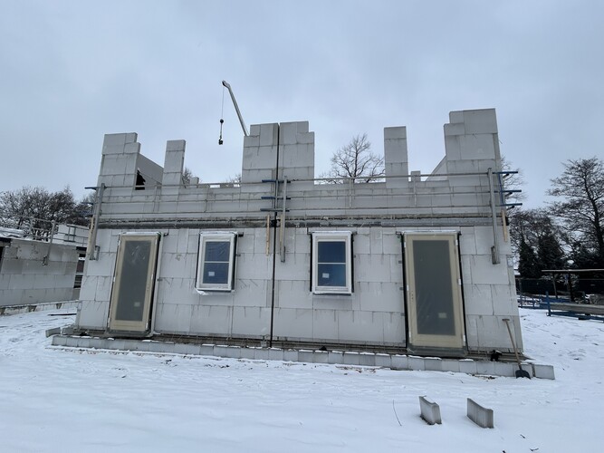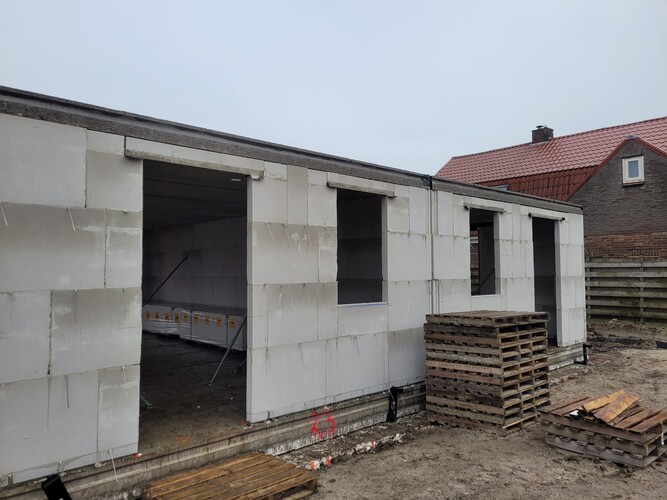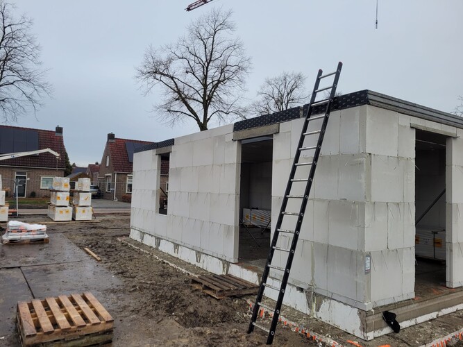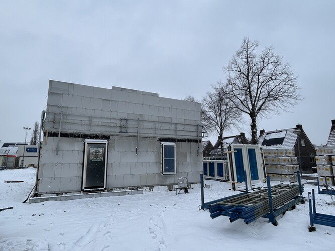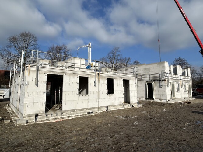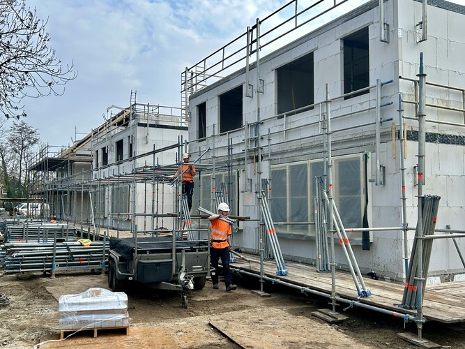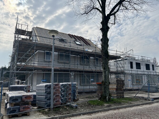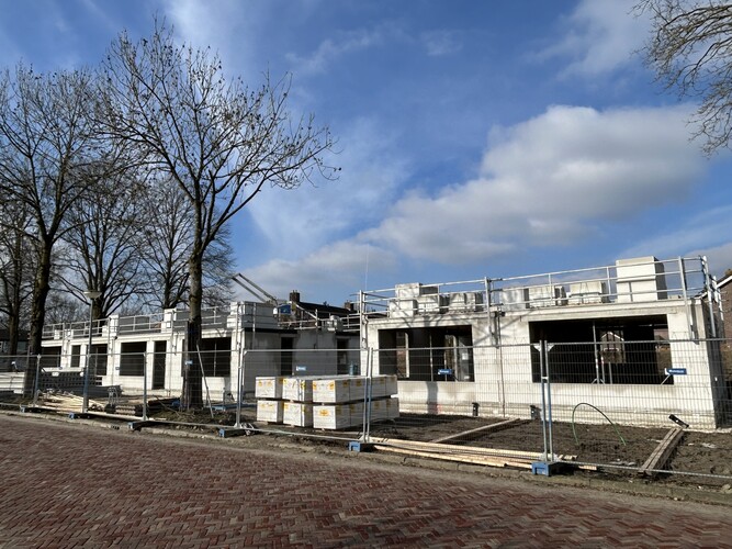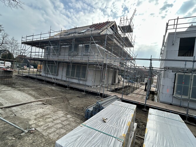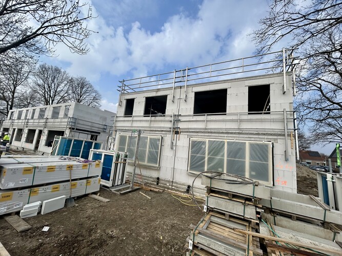 Koenen Bouw is de afgelopen weken bezig geweest met het casco van de woningen. De contouren van de woningen zijn al goed zichtbaar. Bij een aantal woningen liggen de verdiepingsvloeren er ook op en zijn er al kozijnen geplaatst. Op dit moment worden de casco's van kalkzandsteen verder afgemaakt. De focus ligt nu vooral op de ruwbouw en op het zo snel mogelijk wind- en waterdicht maken van de woningen.