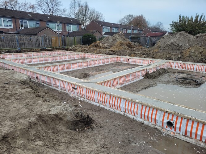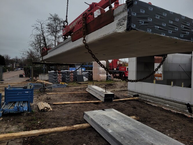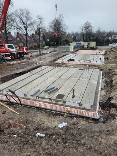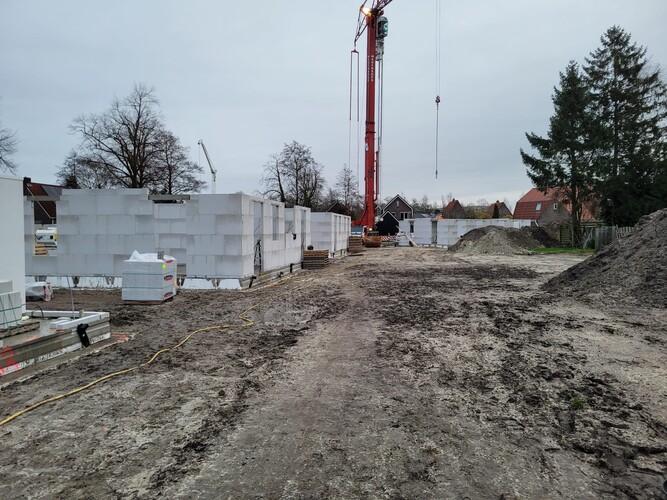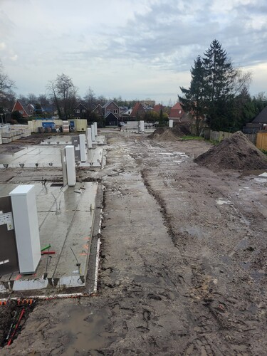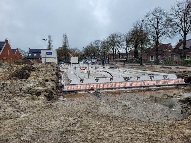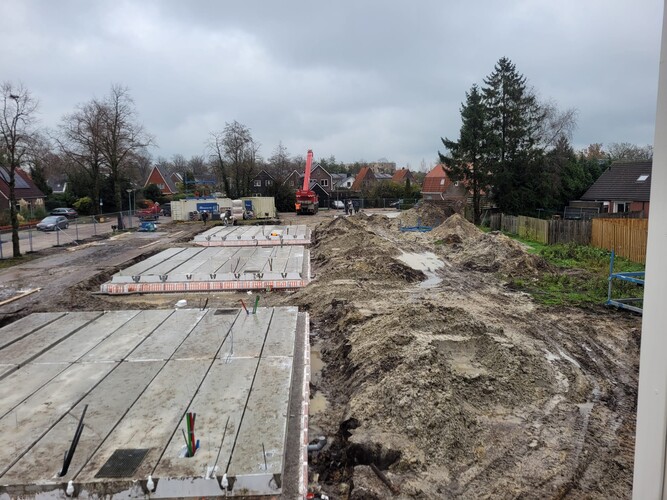 De funderingspalen en het bronsysteem voor de verwarmingsinstallatie van de nieuwe woningen zijn inmiddels aangebracht. En de periode tot aan de kerstvakantie is gebruikt om de begane grond vloeren klaar te hebben.