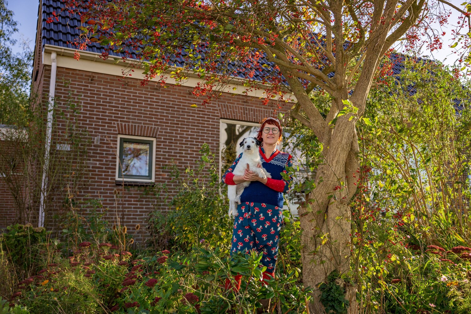 We gaan langs bij Marjan (54) die samen met haar hond Okki in Tweede Exloërmond woont. Toen onze collega Bert Roddenhof, adviseur groenbeheer en klimaatadaptatie, een kijkje kwam nemen, ontdekte hij een prachtige bloeiende en groene tuin. Met veel hergebruikte materialen en weinig bestrating. De plek waar vogels, egels en insecten zich helemaal thuis voelen. En een tuin die tegen extreme weersomstandigheden kan, zoals hoge temperaturen in de zomer en hevige regenval.