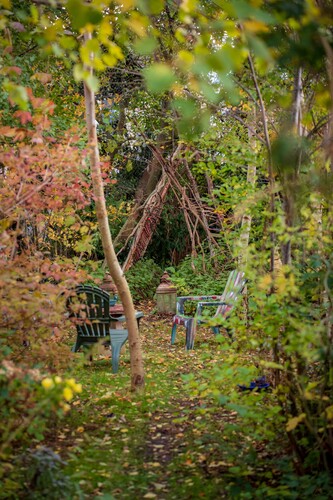 Hergebruik zit in alles wat Marjan doet. “Wat ik snoei, gebruik ik weer. Ik gebruik het in mijn tuin als border. Daar mogen graag allerlei dieren wonen. Mijn kleding is vaak ook tweedehands, net als bijna alles in mijn huis. En dus ook in mijn tuin.” Toen er woningen in de buurt gesloopt werden, redde ze in overleg tientallen planten van de ondergang. “Die heb ik een nieuw thuis gegeven.”