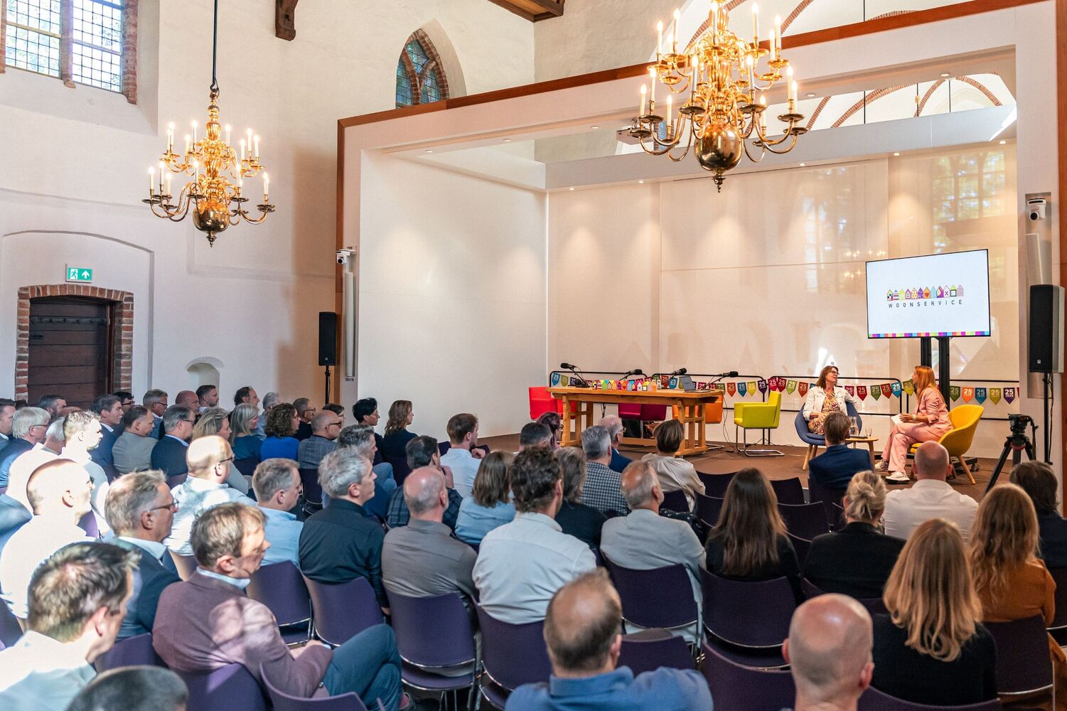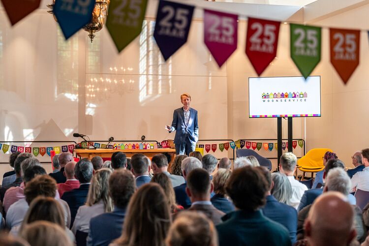 Op donderdag 25 september sloten we het 25-jarig jubileum van Woonservice af met een feestelijke en inspirerende stakeholdersbijeenkomst in de Stefanuskerk in Beilen. Zo’n 100 vertegenwoordigers van gemeenten, zorginstellingen, bouwbedrijven, architecten, collega-corporaties en andere samenwerkingspartners kwamen samen om het jubileum te vieren en vooruit te kijken. Het thema van de middag: hoe bouwen we samen aan een duurzame toekomst?