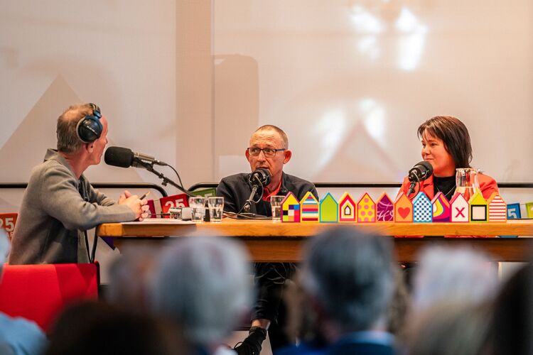 Tijdens de bijeenkomst gingen Gerrit Hiemstra, Renate Harkema en Peter Vereijken samen aan tafel in een live podcast. Onder leiding van Edwin Mooibroek bespraken zij hoe klimaatverandering invloed heeft op onze manier van wonen. Ze gingen in op vragen als: hoe houden we onze wijken ook de komende 25 jaar leefbaar in een veranderend klimaat? En wat kunnen we nu al doen om ons voor te bereiden op de toekomst? De podcast is terug te luisteren via