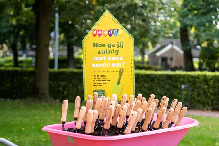 De bijeenkomst zat vol inhoud, maar er was ook ruimte voor feest. De locatie was vrolijk versierd en we trakteerden op taart en hapjes. Tijdens de inloop, pauze en borrel werd er live achtergrondmuziek verzorgd door het singer-songwriter duo Anouk & Yora uit Assen. Als symbolisch bedankje ontvingen alle gasten een plantenschep: een uitnodiging om samen verder te bouwen aan een duurzame toekomst.