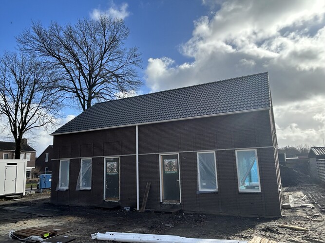 Het plaatsen van de buitenberging staat nu voor maart op de planning. Ook worden dan de keukens en de vensterbanken geplaatst. Halverwege maart begint de stratenmaker met het straatwerk rondom de woningen.